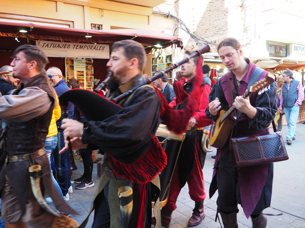 Down the winding narrow road again, as we make our way to a windy but sunny Cartagena and the medieval festival in full swing in town. Not before stopping for a coffee first – no rushing about without a time to relax in Spain! Then on to a walkabout through the stalls, all dressed, including the stall owners, for medieval times – everyone in the spirit and the swing of the festival. A veritable cacophony of sound & colour!