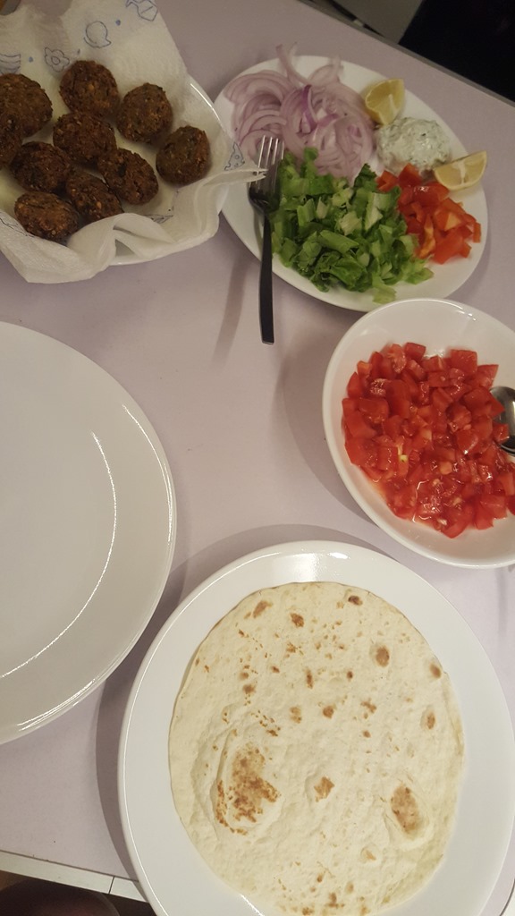 And I managed to cook for veggie night – falafel wraps anyone?