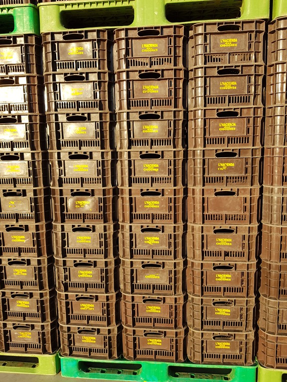 Then back to the estate where in sharp contrast, we heaved a sigh, shook our shoulders to relax and spent a quiet, peaceful, cool hour with Jalil and Wafae as they introduced us to their company. Their brand new, stainless steel, spotlessly clean machinery standing in enormous sheds, silent as they wait for parts to enable them to fire up the bottling plant. And hectolitres of wine stored away in vats from the last 2 years worth of picking just waiting for their license to start bottling and selling.