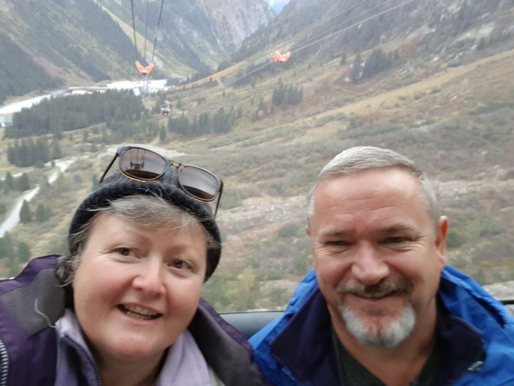 An hour, a bus ride and a cable car journey later (as we were stepping on, Jane asked me if I was scared of heights. “Fucking terrified, Jane, but determined not to miss it and absolutely determined to enjoy it”!) and we were almost at the top of the glacier. Unfortunately we were never to get to the very top this time …..but next time….So we got off at the second to last stop and as we did, the clouds parted and the sun came out.